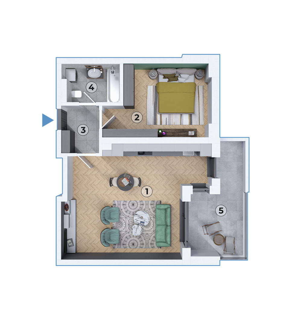 Design modern și spațiu optimizat: Acest apartament cu 2 camere, tip E, îmbină un design modern cu o utilizare inteligentă a spațiului. De la living-ul deschis și luminos la dormitorul confortabil și balconul spațios, fiecare element este gândit pentru a oferi confort și stil. Ideal pentru persoane singure sau cupluri, acest apartament reprezintă echilibrul perfect între confortul urban și un mediu de locuit practic și estetic.