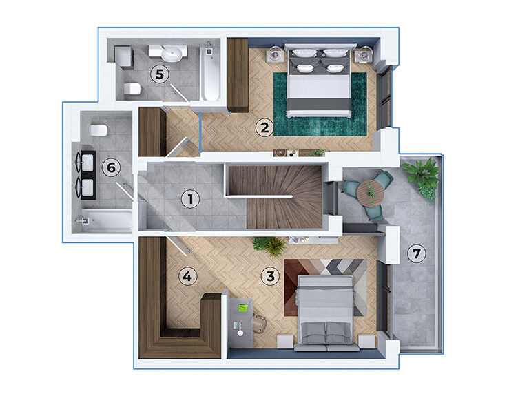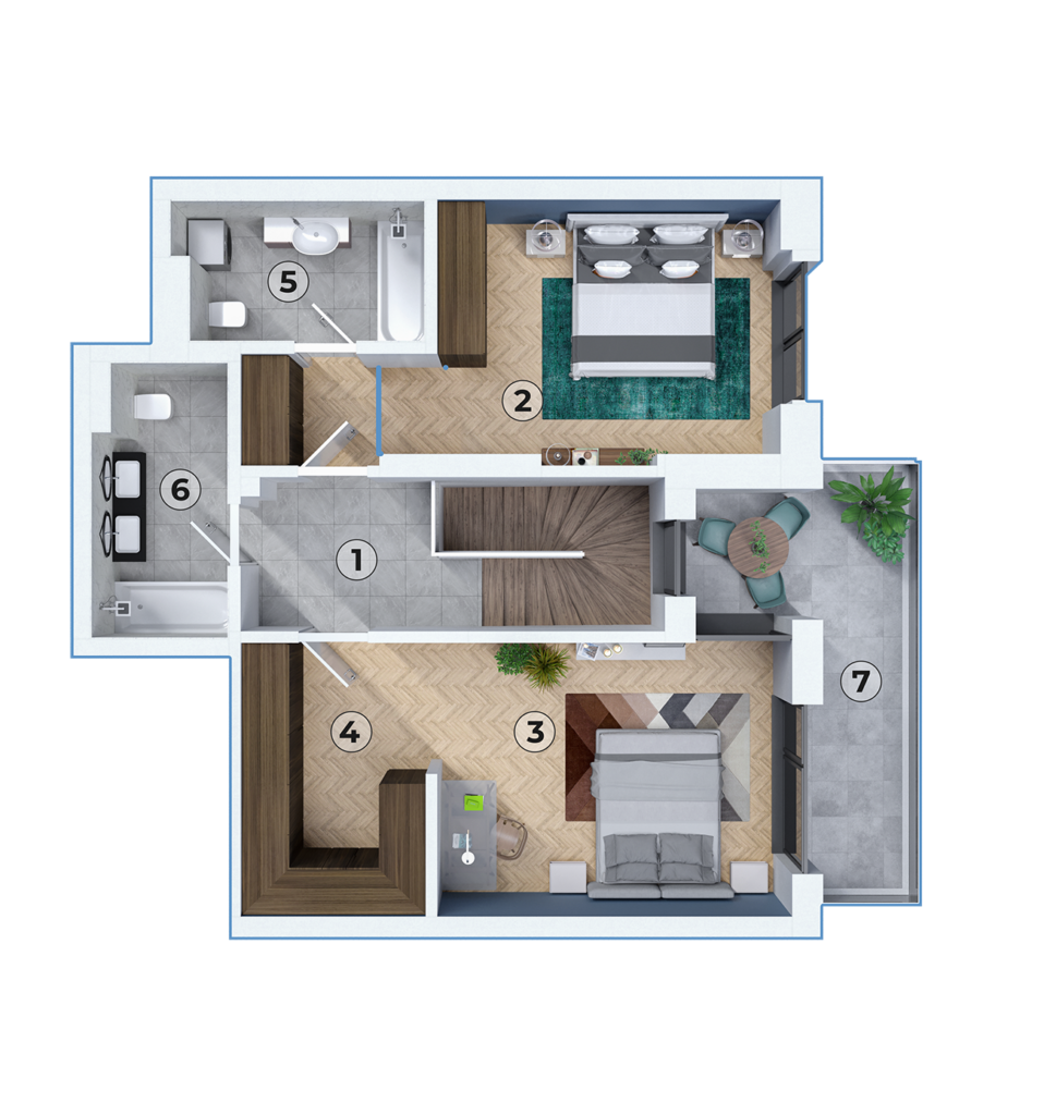 Design contemporan și spații vaste: Acest duplex, tip A, combină spațiul generos și designul modern pentru a oferi o experiență de locuire de excepție. De la living-ul spațios la dormitoarele confortabile și balcoanele ample, fiecare detaliu este atent gândit pentru a maximiza confortul și estetica. Ideal pentru familii sau pentru cei care doresc mai mult spațiu și intimitate, acest duplex reprezintă echilibrul perfect între lux, confort și funcționalitate, oferind un stil de viață modern și rafinat.