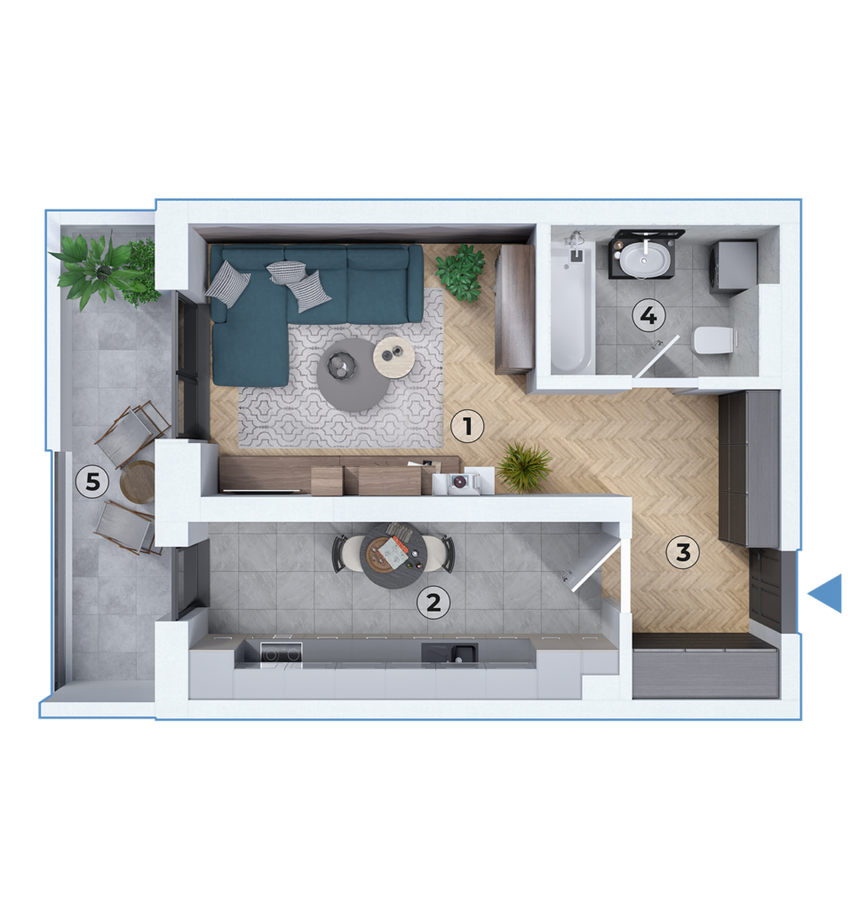 Design inteligent pentru maximizarea spațiului: Acest studio este proiectat pentru a oferi o experiență de locuire confortabilă și practică, într-un spațiu compact. Designul său inteligent asigură o utilizare eficientă a fiecărui metru pătrat, creând un mediu de locuit modern și funcțional. Balconul adaugă o dimensiune suplimentară, extinzând spațiul de locuit și permitând locatarilor să se bucure de exterior. Ideal pentru cei care caută un stil de viață urban, acest studio reprezintă o combinație perfectă de confort, stil și funcționalitate.